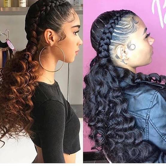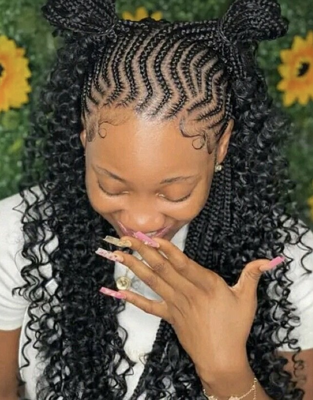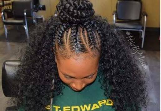 This is one of the most loved Nigerian braid designs and it has natural hair at the bottom. To display your tight, kinky curls, wear it down or partially up in a ponytail and you are good to go