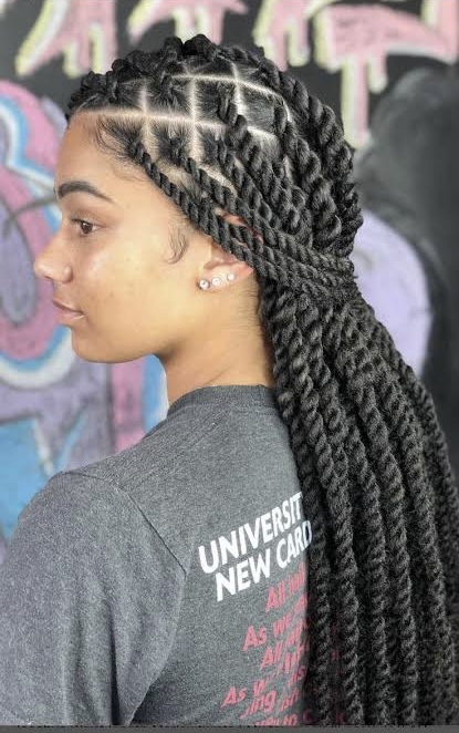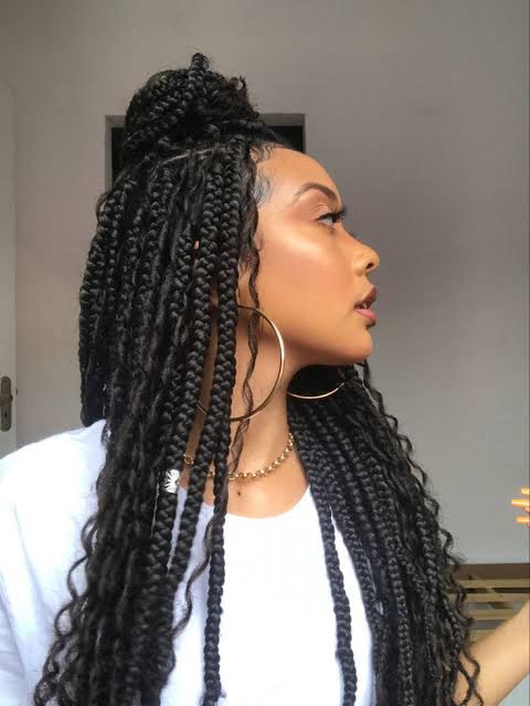 If you want a look that screams grandeur, opt for huge Nigerian braids. With just the top part of your hair in a high-twist bun, you can create a simple look that will instantly make you feel like a princess.