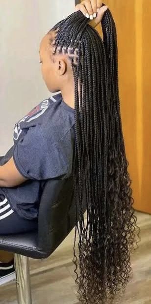 This has become very popular in Nigeria and can last up to 2-3 months depending on the size of the braids. Curls can be added to the tips and it can be styled differently.