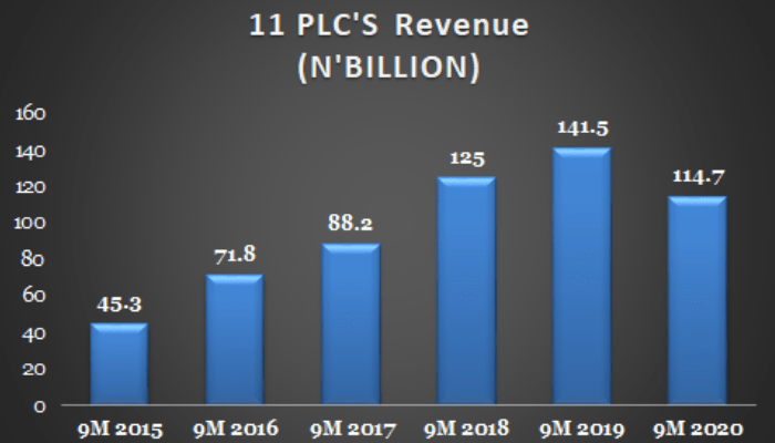 11 plc, formerly Mobil Nigeria plc, posted a 35 percent decline in profit to N4.12 billion in the first nine months of 2020 from N6.3 billion a year earlier as revenue plunged.