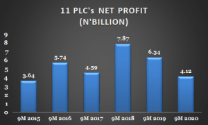 Consequently, 11 plc’s gross profit fell 30 percent to N7.9 billion in 9M’20 compared to N11.4 billion a year earlier.