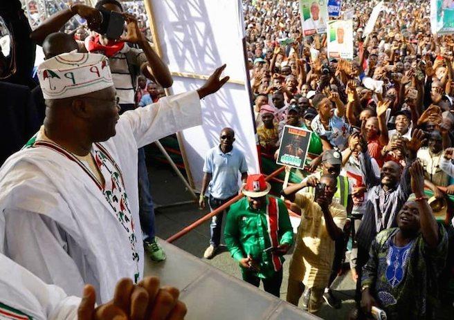 In his remarks, Senate President and Director General of the PDP Presidential Campaign Organisation, Bukola Saraki, lamented the growing level of poverty and urged supporters not to ignore that factor during voting.