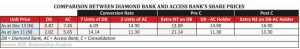 Likewise, the worth of seven (7) units of Diamond Bank would still remain above two of Access Bank if the additional N1 per Diamond Bank share is done after consolidation as the converted Access Bank shares would only increase from N11.30 to N13.30.