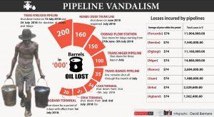 These pipelines are however, poorly secured, thereby making them targets of repetitive attacks by vandals and this has cut the country’s revenue from oil and gas by half.