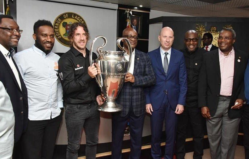 Lagos State governor, Akinwunmi Ambode on Wednesday received the UEFA Champions League Trophy alongside its ambassador and former captain of Barcelona FC of Spain, Carles Puyol in Government House, Ikeja.