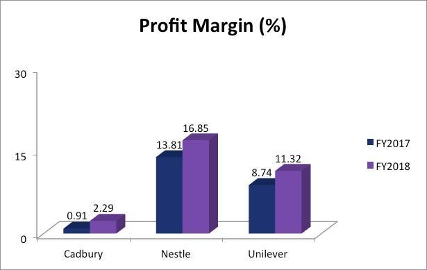 We found that the firms were able to grow their profit margin given their improved top and bottom lines in 2018. Cadbury’s after-tax profit surged buoyed by reduced expenses. Unilever and Nestle’s bottom-line grew 28 percent and 40 percent year on year respectively.