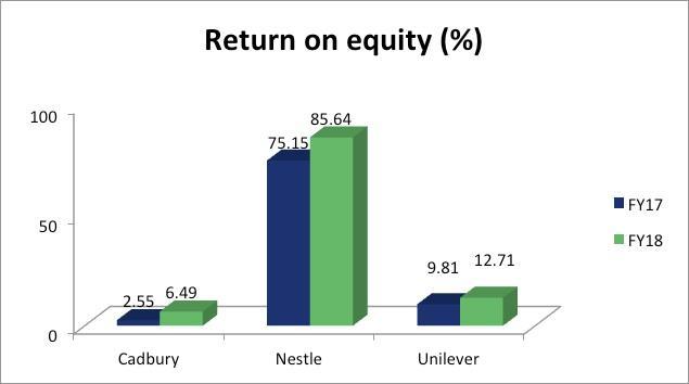Nestle’s high ROE figure is due to the fact that its 69 percent of its capital is majorly financed by debt, implying that it uses less shareholders’ equity (31 percent), compared with Cadbury and Unilever in which equity accounted for 46 percent and 63 percent of their capital structure.
