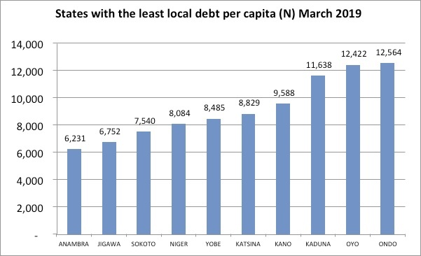 At the bottom of the pyramid of the local debt per capita are the residents of Kano, Katsina, Yobe, Niger, Sokoto, Jigawa and Anambra states. Each resident in the aforementioned states would pay less than N12,000 if their domestic debts were to be fully paid by IGR only.