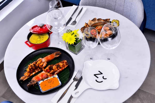 The whole ambiance of this restaurant is elegant, from the smell of the gently lit scented candles, the warmth of the lights and gentle background music. Z Kitchen feels modern, welcoming and warm. The attention to detail in Z Kitchen is impressive, more than the food, it’s the Z experience. Simple, minimalist design yet very chic. It is the only restaurant in Lagos with a visible meat aging chamber. Z Kitchen is a place where you can go for a special celebratory dinner party, it’s also perfect for a romantic date, dinner, and drinks with friends and so much more. My favorite meals on the menu are the garlic prawns and steak frites.