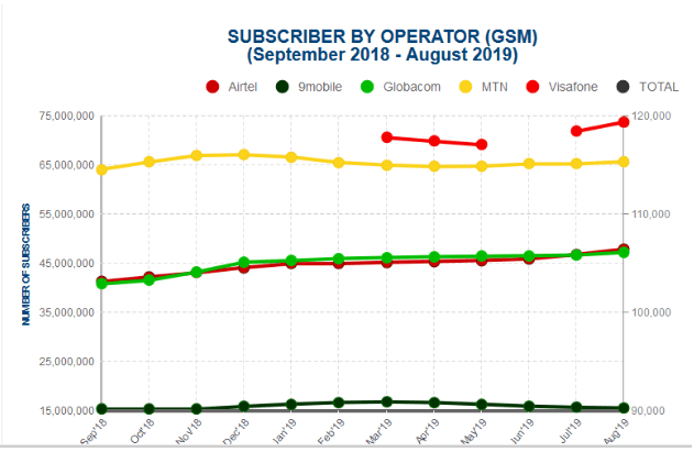 In July when MTN was owed, a notification letter sent by the NCC to the affected parties had asked the South African telecom, Airtel and IHS to disconnect, on a partial basis, services to Globacom, Ntel and some interconnect exchange points. 9Mobile, the fourth largest telecom which has seen subscriber numbers dip significantly in 2019, has also struggled to pay disconnection charges.