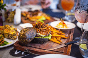 Noir is popularly known for steaks cooked on hot stone “Black Rock”, however, we chose the Charcoal flamed grilled option for the main course. 500Gr T-Bone steak was cooked to perfection – juicy medium-rare, like the French, will say À Point. Another star meal was the Roasted Mint Crusted Lamb Chops with Sweet Potato Mash and Beetroot Red Wine Jus which was the prettiest dish of the night. For dessert, the berry cheesecake was creamy comforting goodness that ended our adventure for the night. Overall, Noir gives you a good bang for your buck, quality dining experience – courteous staff, good ambience, and tasty modern French dishes.”