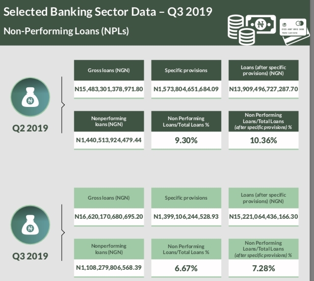 Non-performing loans (NPLs) in the banking sector fell to a four year low in the third quarter of 2019 as oil and gas companies paid down stubborn debt.