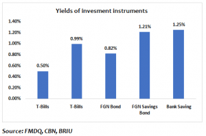 Other types of bonds at a 1-year tenor are: the FGN Savings Bond at a yield of 1.21 per cent; Sub-National Bond by various State governments; Corporate Bond; FGN Eurobond; Corporate Eurobond; and even Commercial Paper which is at a maximum 231 days have yields lower than the inflation rate.