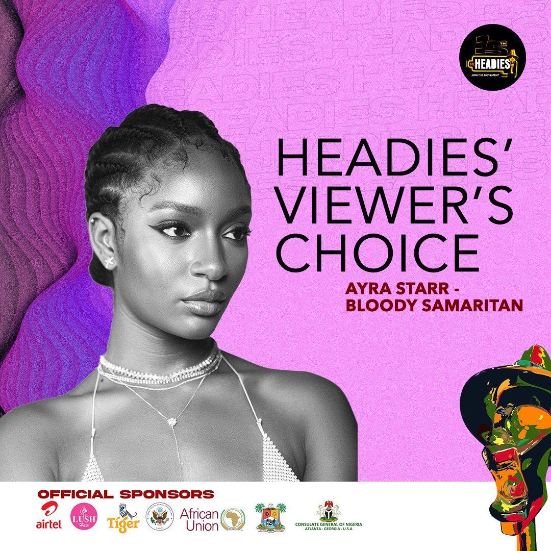 Ayra Starr – “Bloody Samaritan”. WINNER
