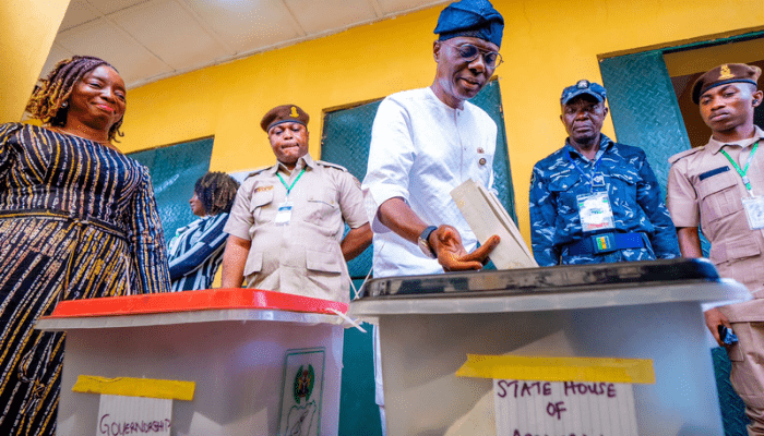 Lagos State Governor, Babajide Sanwo-Olu along side his wife, Ibijoke Sanwo-Olu voted at 10:18am.