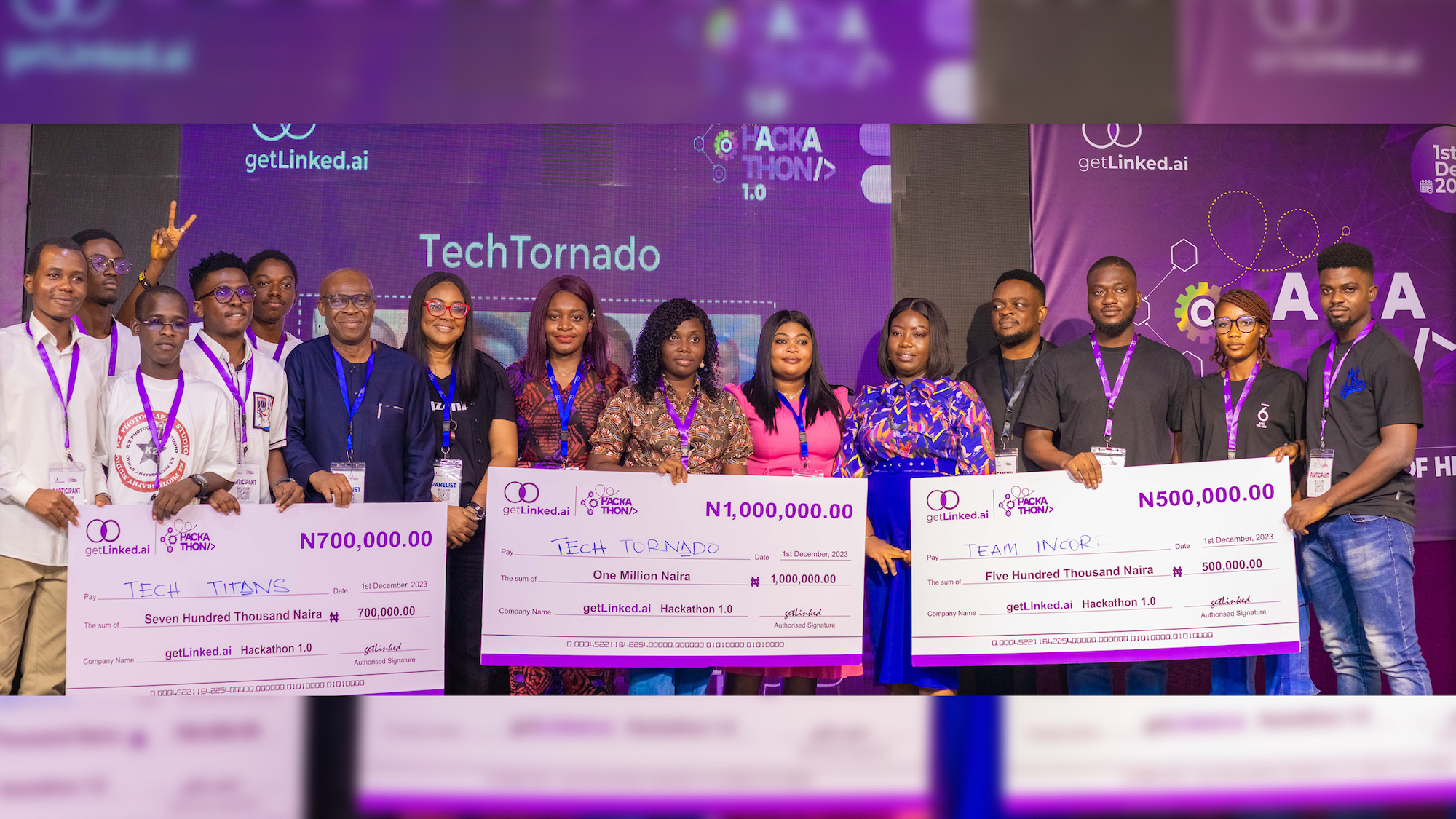 The finalists of the first edition of the getLinked.ai hackathon included Pathfinders, Inventus, Dev Combos, Xavier, Team Success, Taiwo Software, TechTitans, Incorp and eventual winners, TechTornado.