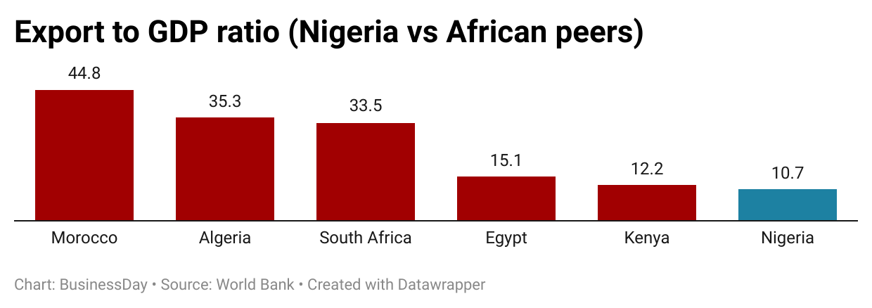 Nigeria’s exports also pale in comparison to countries with similar-sized GDP.