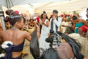 The elders begin to bless the newlyweds’ union after the bride price has been paid. After the ceremony, the bride is brought to her new home while traditional dancers and Itsekiri music amuse the guests.