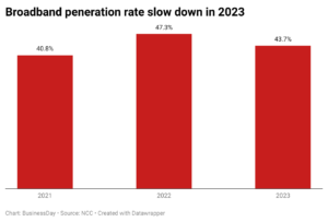 According to the Nigerian Communications Commission, the broadband penetration rate in Nigeria as of December 2023 reached 43.7 percent compared to 47.3 percent in the same period of 2022.