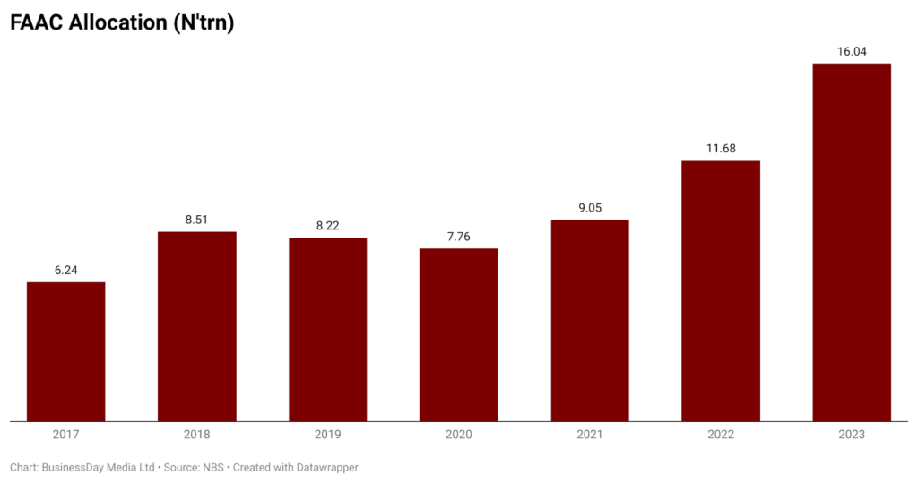 According to the NBS, the Federal Account Allocation Committee (FAAC) distributed N2.07 trillion in February 2024 from the total revenue collected in January 2024 among the Federal Government, States, and Local Government Councils.