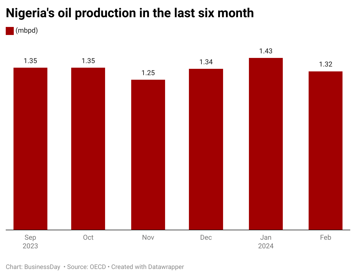 This is equally higher than the third quarter of 2023 production volume of 1.45 mbpd by 0.10 mbpd.