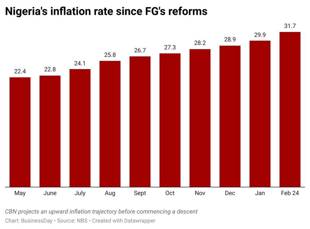 Inflation has continued to be on the rise due to high energy costs, the impact of exchange rate fluctuations and persistent insecurity concerns in the country which is affecting agricultural activities.