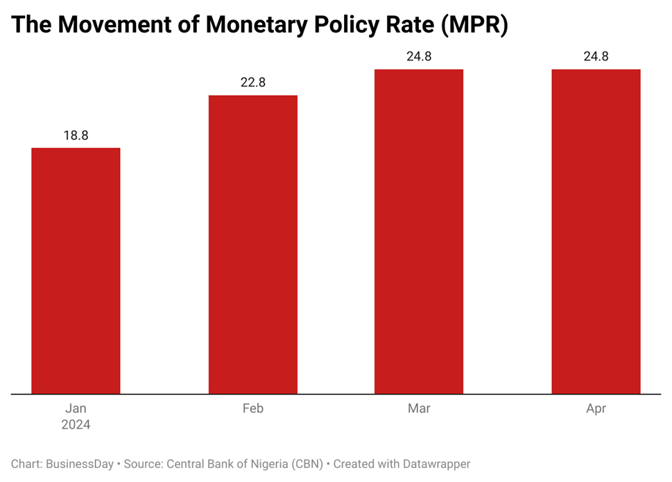 Inflation in Nigeria has been a persistent and growing concern. Despite the Central Bank of Nigeria (CBN) taking decisive action by increasing the Monetary Policy Rate (MPR) twice this year—first from 18.75 percent to 22.75 percent in February, marking a staggering 400 basis point hike, and then from 22.75 percent to 24.75 percent in March, adding another 200 basis points—the inflation rate continues to rise.
