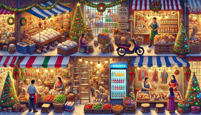 What is a Christmas party without drinks? Sellers of soft drinks, juices, wines, and spirits enjoy booming sales as families stock up to entertain guests and toast to the season. Whether it is a bottle of soft drink for the kids or a fine wine for the adults, drinks vendors are essential to keeping the celebrations merry and bright.