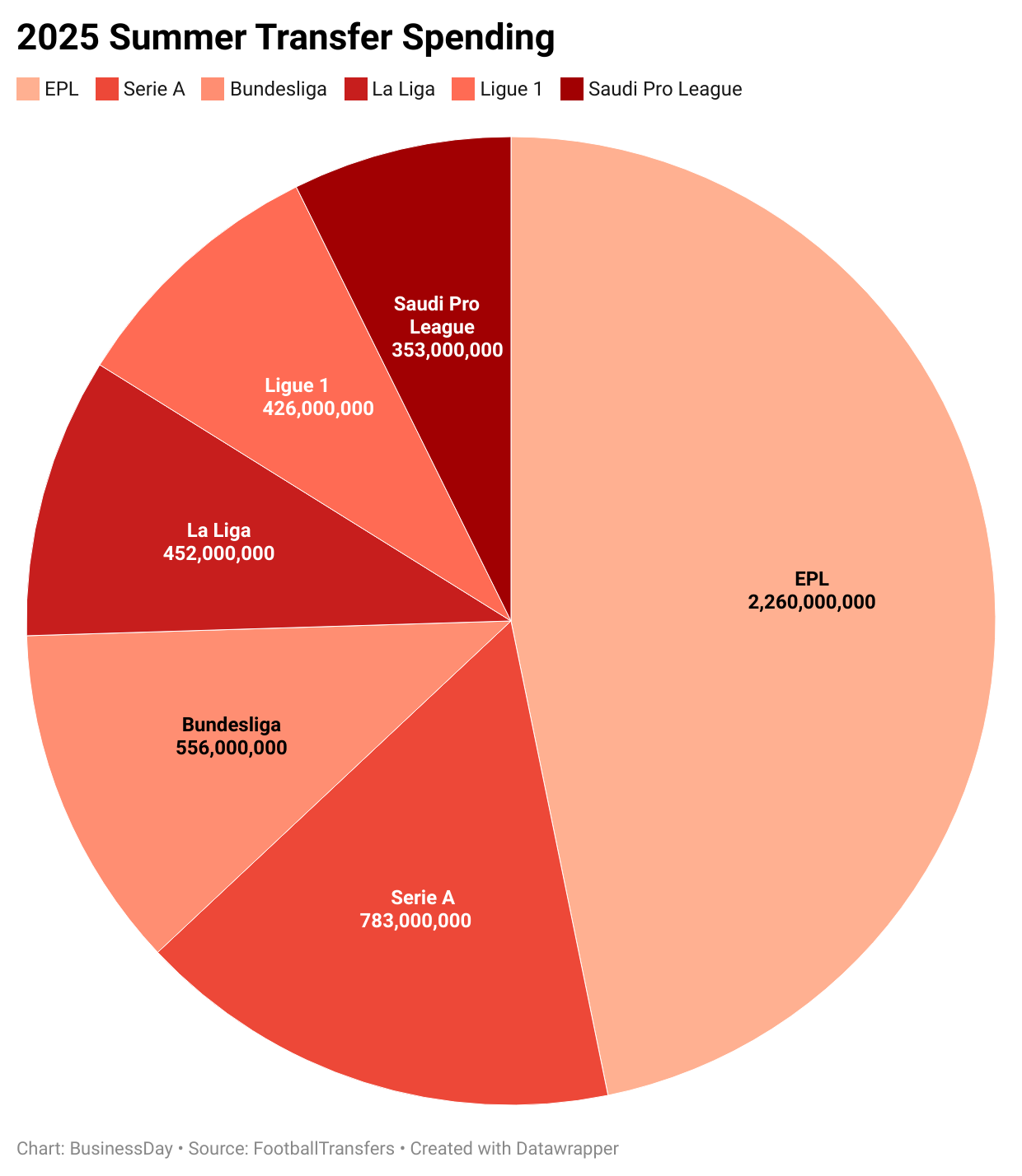 Premier League clubs are once again dominating the transfer market, spending more than Serie A, Bundesliga, Ligue 1, and La Liga combined during the current summer window.