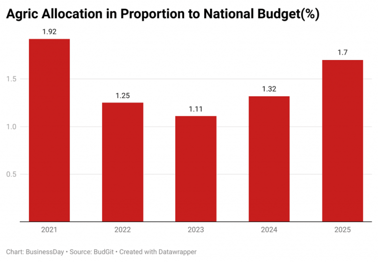 Since then, however, Nigeria’s agricultural budget has fluctuated between one and two percent, with experts warning that the continued neglect of the sector could worsen the country’s food security crisis.
