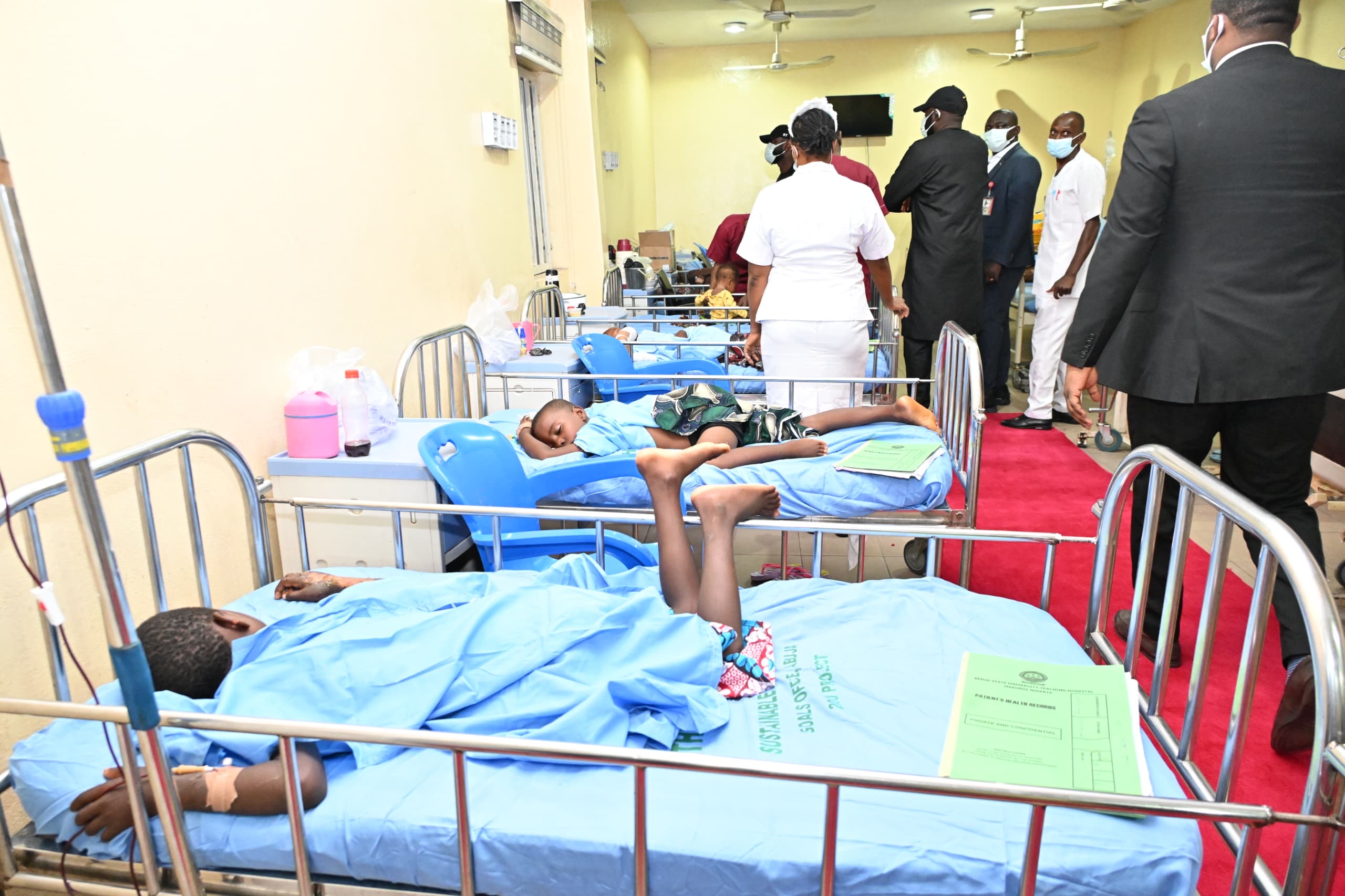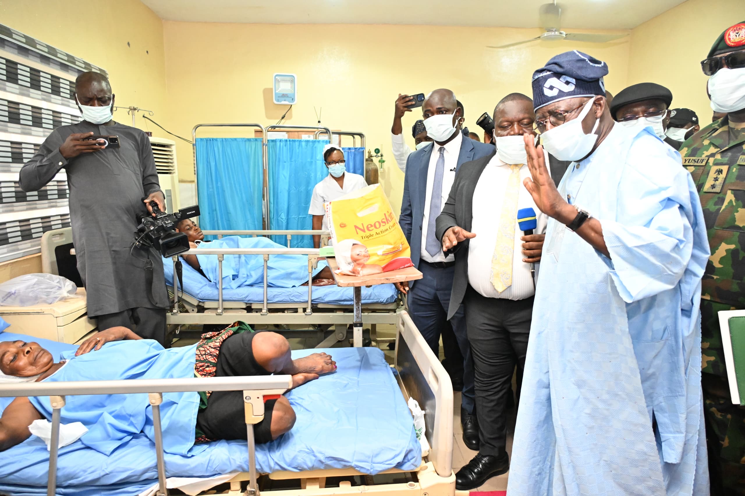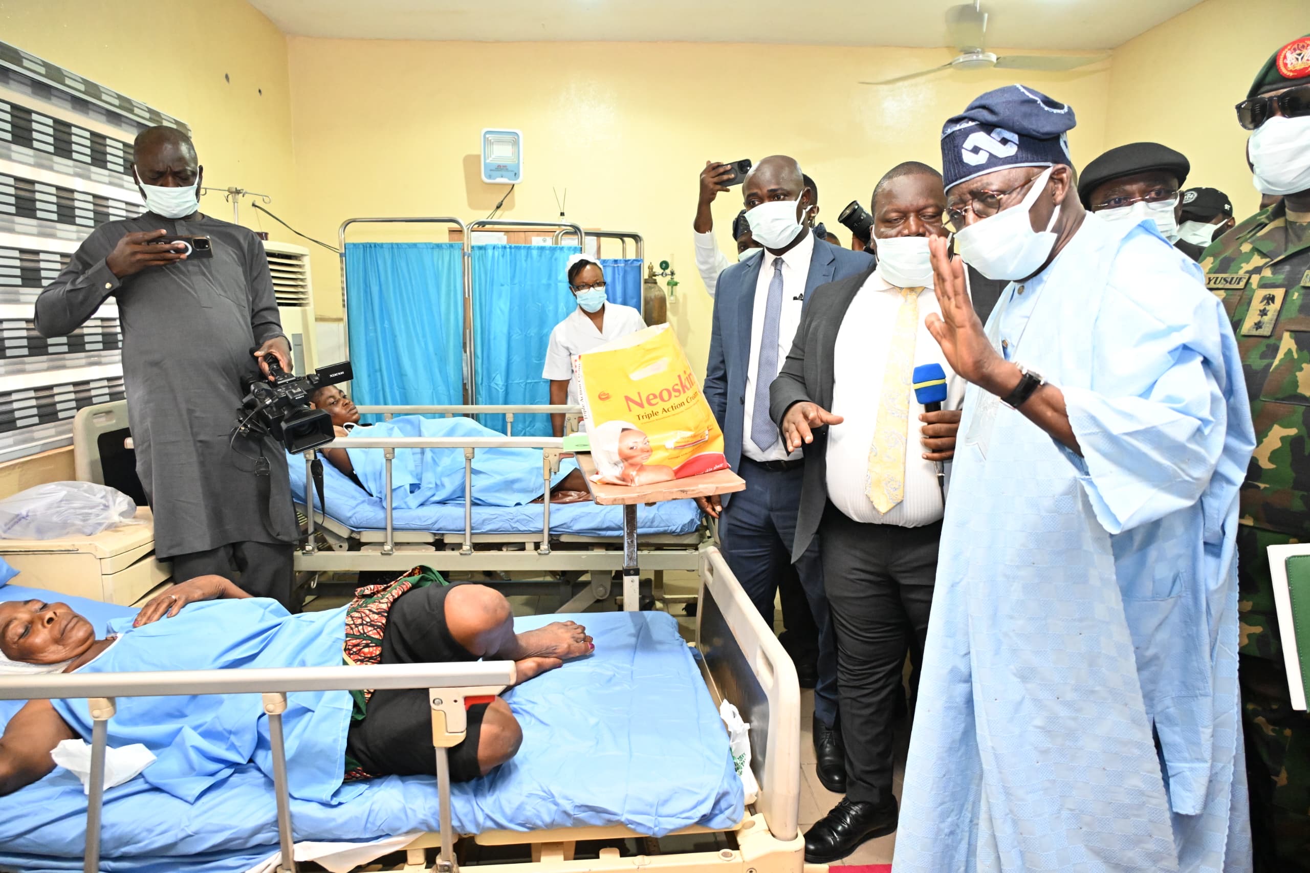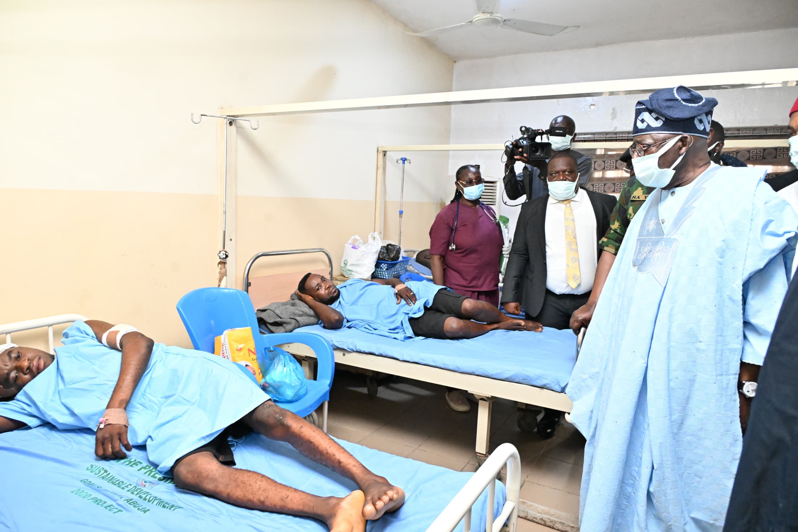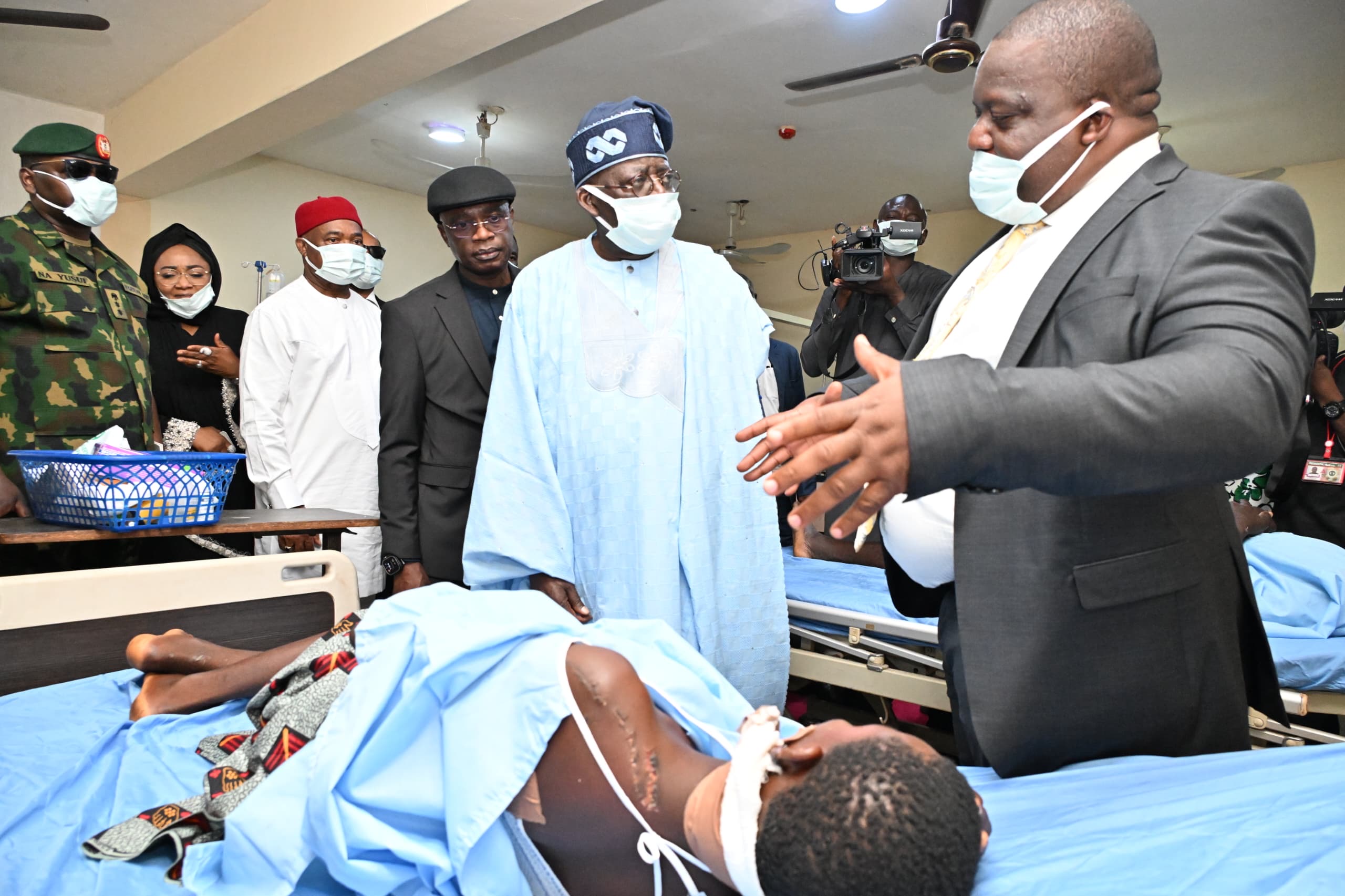 The president visited survivors of the massacre who are currently receiving treatment at the Benue State University Teaching Hospital. He arrived at the Nigeria Air Force Base Airport in Makurdi around 12:58 pm on Wednesday before proceeding to see the victims.