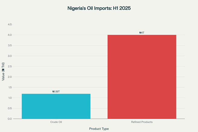 Chart 1: Nigeria’s crude oil vs. refined products import value, 1st half 2025