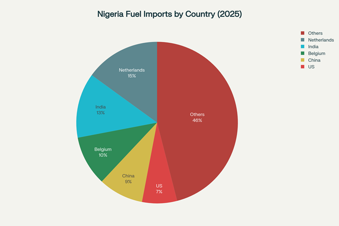 Chart 2: Nigeria’s refined fuel imports split by country of origin, 2025 (%)