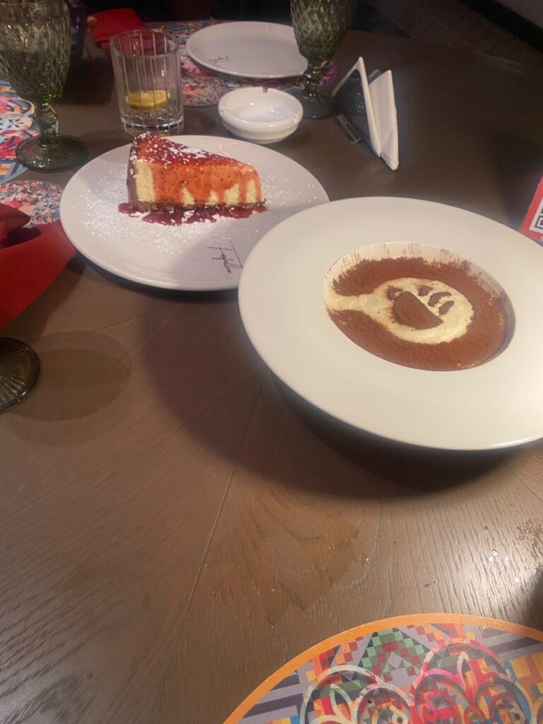 The Pizza Margherita arrives at the table: tomato sauce, mozzarella, basil. The crust has that characteristic Italian char and chew. Chuks doesn’t hover; he’s learned the fine dining rhythm of appearing exactly when needed and disappearing when he’s not. This is different from how servers operate at Cactus or Salma’s Terrace, the group’s other establishments. Fine dining demands restraint, an understanding that diners have paid not just for food but for time and space to enjoy it.