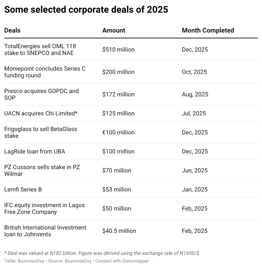 BusinessDay has tracked 25 of the corporate deals that defined the Nigerian corporate scene in 2025