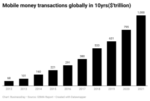 The Chart represents a consistent increase in the value of mobile money transactions processed globally over the last ten years