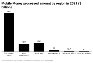 According to a GSMA report, Sub- Saharan Africa took the highest share of the amount processed by closing the year with a total of $697.7 billion.