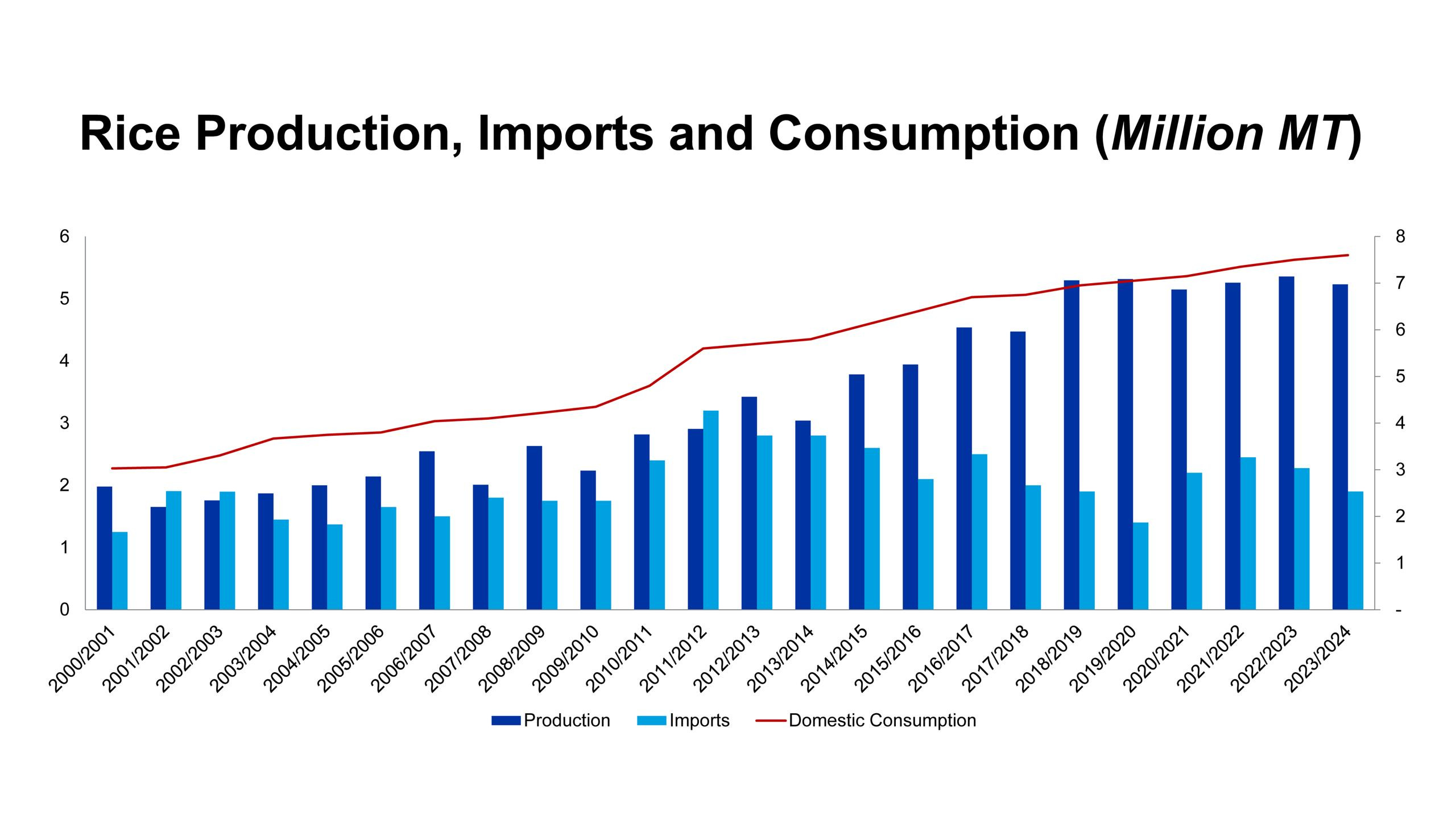 Different sources may give different production numbers but for this exercise, the chart above is sufficient. Thai rice has always carried a mark of quality and for many years it was a favourite of Nigerians.