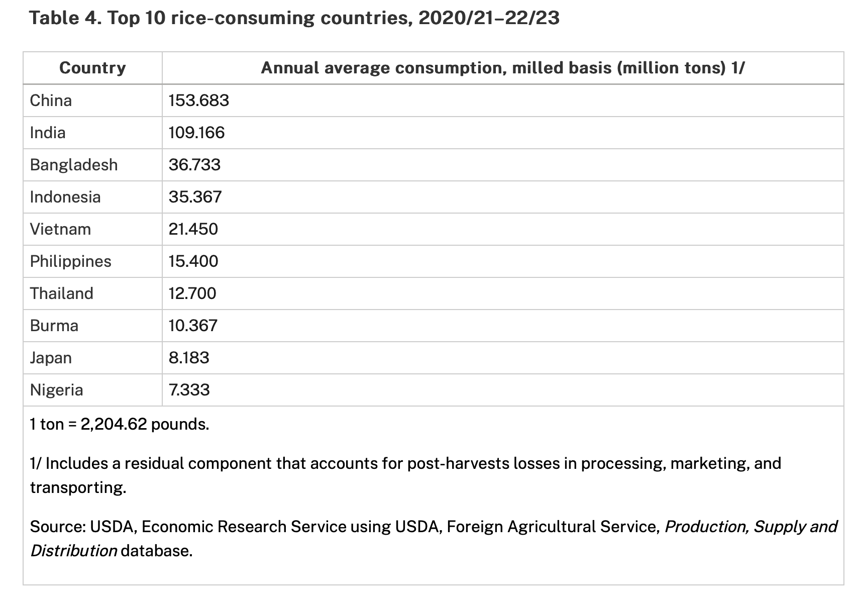 Nigeria is a fairly large consumer of rice as the chart below from the USDA shows: