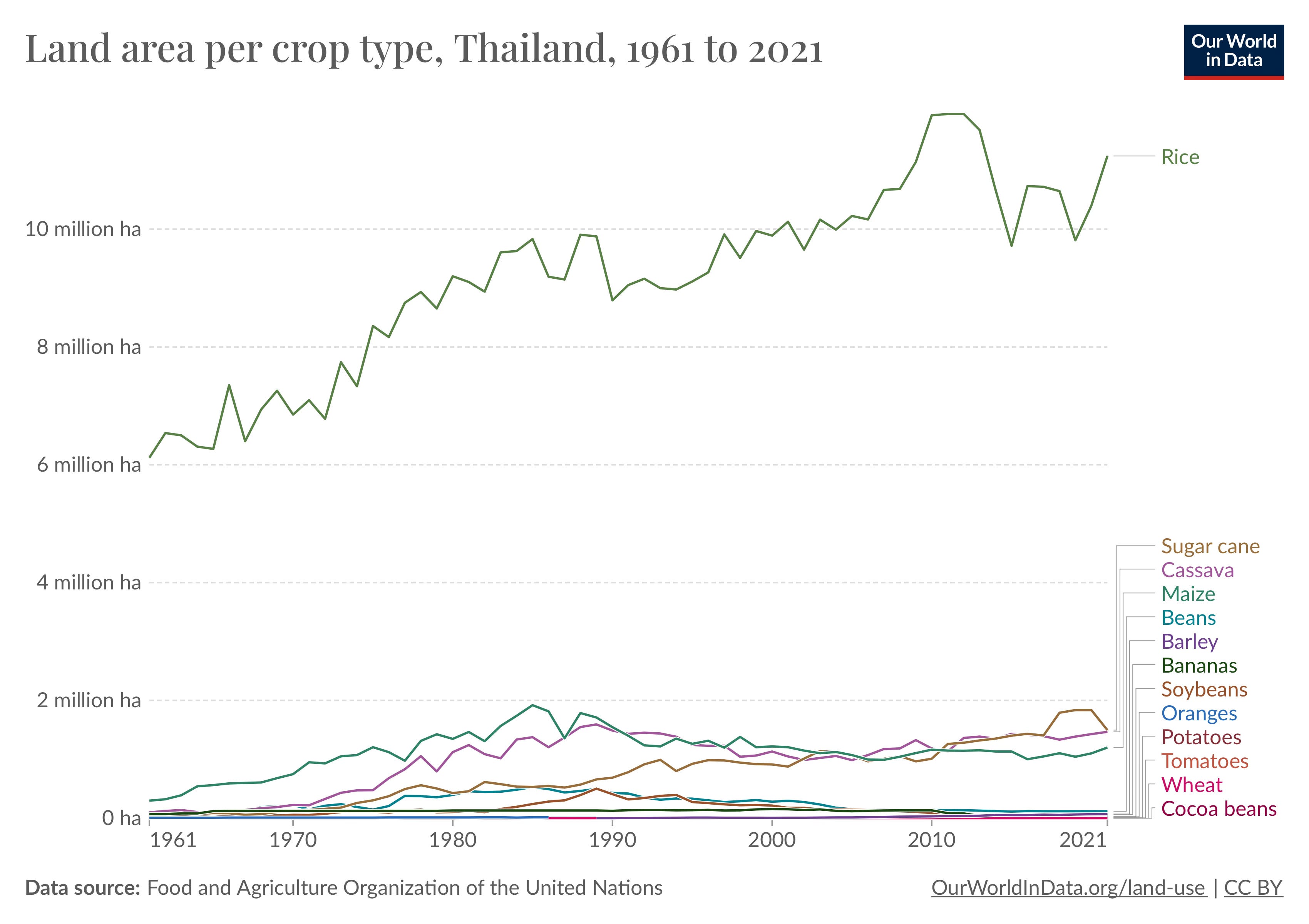 Rice plays a much bigger role in Thai food security as it’s a base food for so many things. From their point of view, the thing to solve for food security is rice. Once that’s done, the rest is relatively straightforward. And that’s reflected in how much land is used for rice compared with everything else.