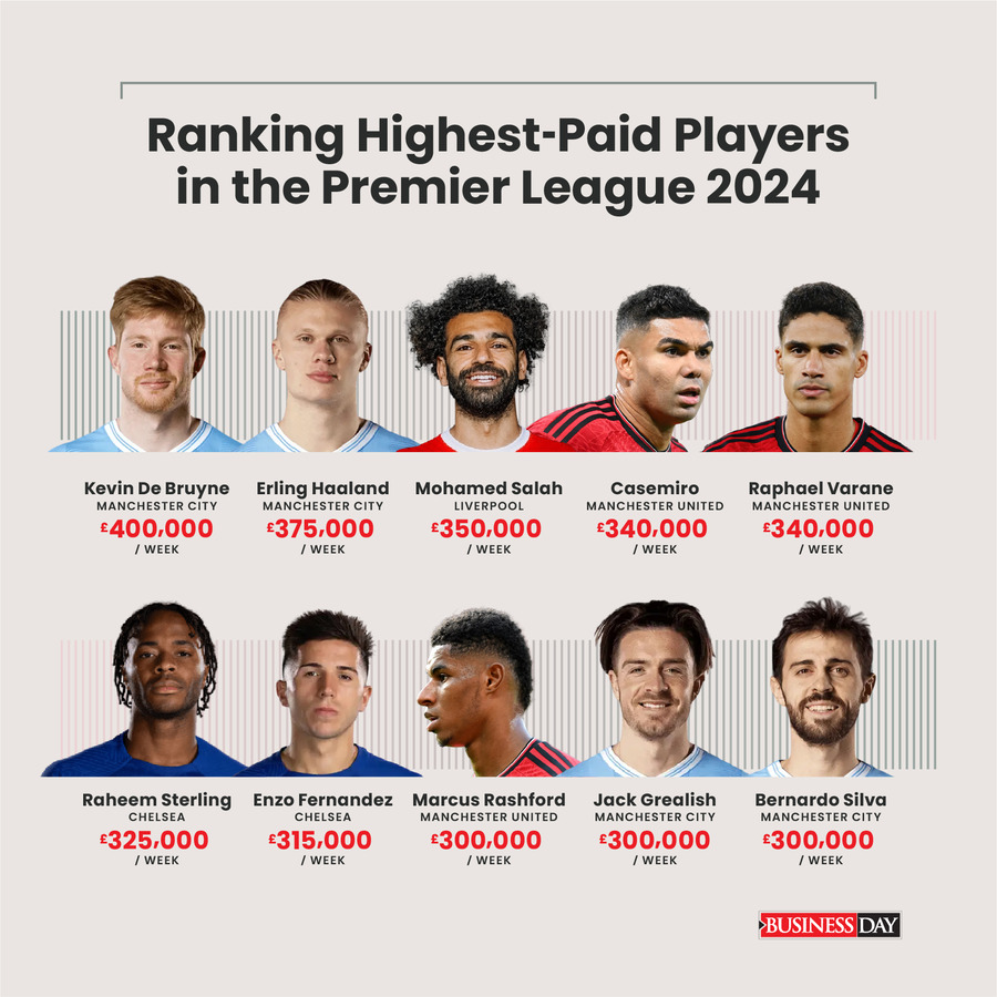 Here, BusinessDay highlights the top 10 earners in the Premier League for the 2024 season: