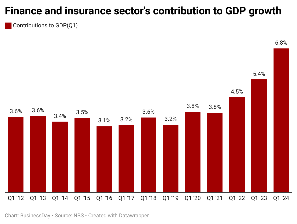 According to BusinessDay analysis of the latest GDP report by the National Bureau of Statistics, the sector rose to 31.2 percent in the first quarter of 2024 from 21.3 percent in the same period of last year.