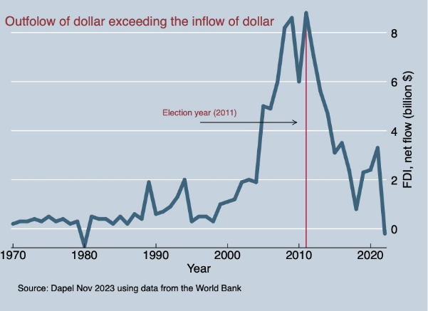First, the liberalisation of the naira-dollar market in June 2016 and in June 2023. Second, the removal of the petrol subsidy in May 2023, given that the price of petrol affects the price of other commodities that depend on it, e.g., transportation and production. According to ILO estimates, approximately 60 percent of businesses in the country self-generate 59 percent of their total energy needs, which is three times more expensive than from the public grid. Moreover, Nigerians spent $13 billion per year buying gasoline and diesel to power their generators, thereby constituting a huge dent in the nation’s foreign exchange and consequently the balance of payments. Power shortages severely cripple businesses in the country, especially tech firms. The Manufacturing Association of Nigeria claimed that, within a decade, 820 manufacturing companies folded up or moved abroad, primarily due to poor power supply.