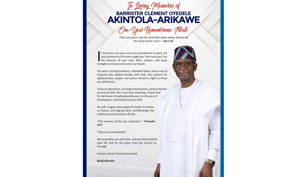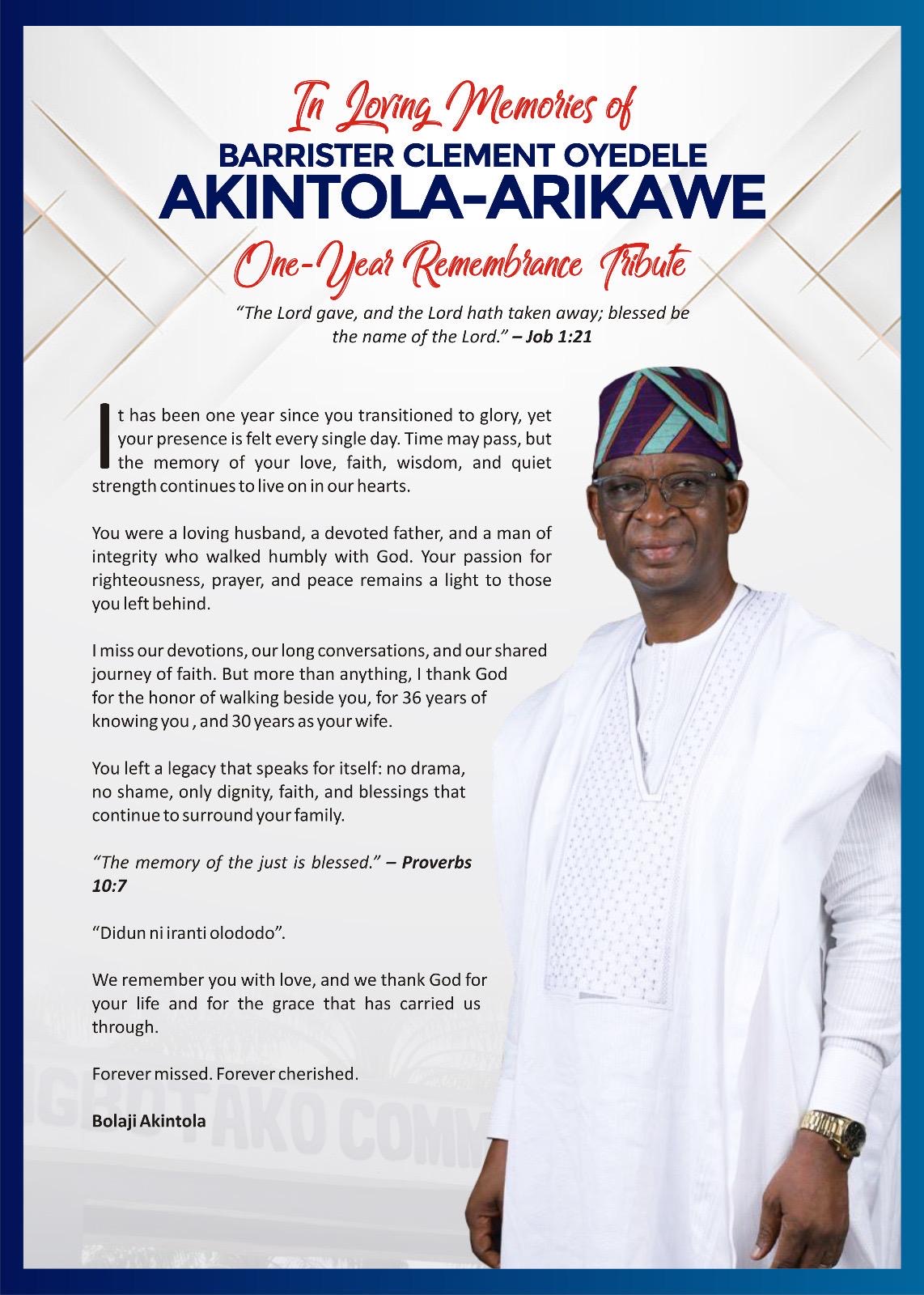 One year after his passing, the name Barrister Clement Oyedele Akintola-Arikawe continues to open doors and inspire excellence.