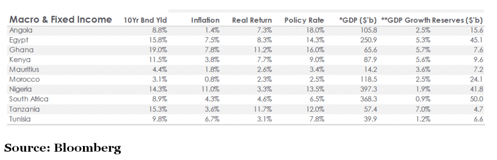 Egypt has a real rate of return of 8.30 percent and inflation rate of 7.50 percent, this compares with Nigeria’s returns of 3.30 percent and inflation rate (11.0 percent). South Africa has a real rate of return of 4.60 percent and an inflation rate of 4.30 percent.