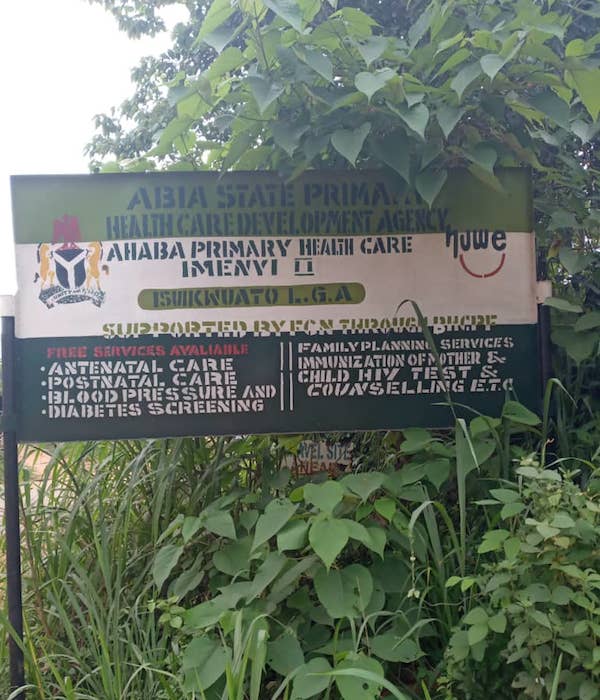 Ahaba Health Centre in Isiukwuato Local Government is also in a bad state with just one medical personnel.