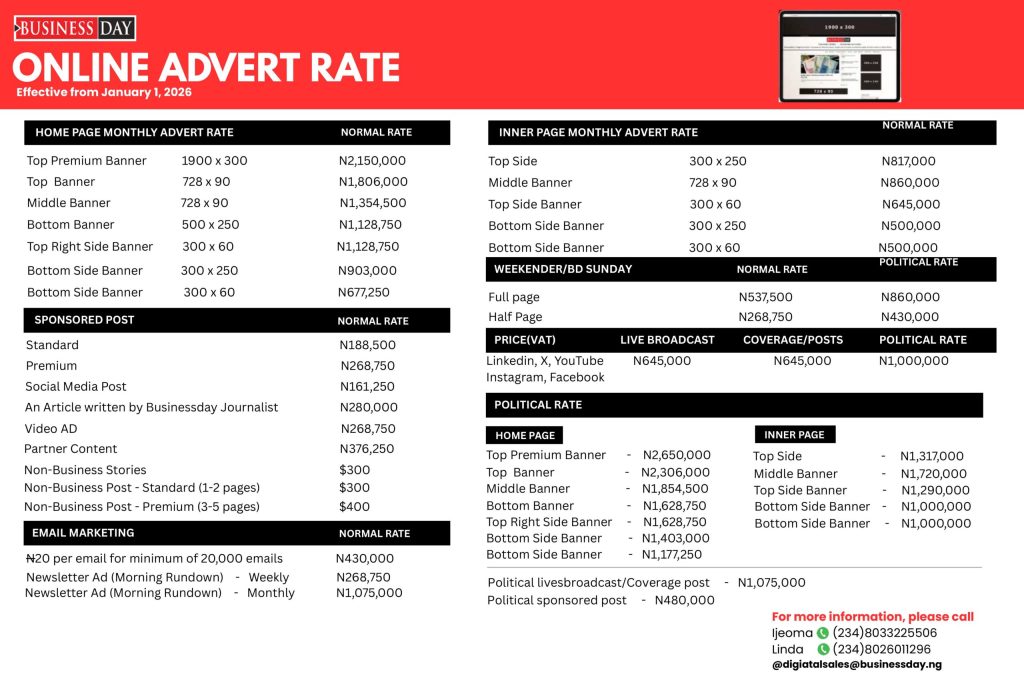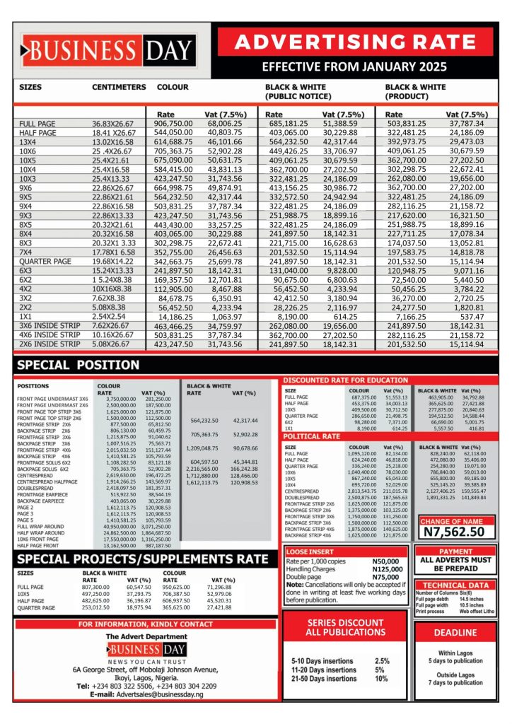 Businessday Advert Rates