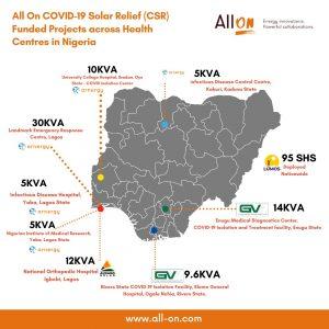 The Chief Executive Officer of the Nigeria Center for Disease Control (NCDC), Chikwe Ihekweazu said, “We are grateful to All On for the support rendered to isolation and health care facilities via the provision of solar power, at a time when healthcare infrastructures are in critical need.”
