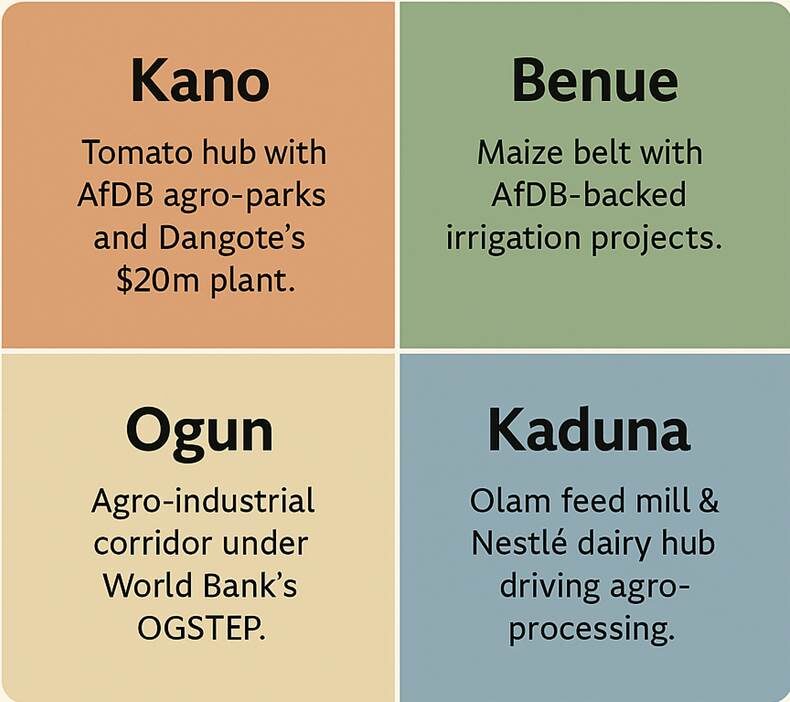 Sources: IAPrecision; Lekki Free Zone Development Company; NEPZA; NSIA; National Agricultural Seeds Council; AfDB (2023–2024); World Bank