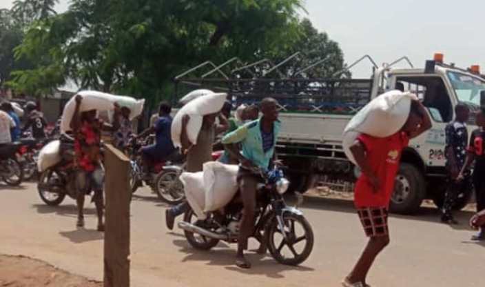 At the Dakibiyu village in Jabi district, hundreds of youths invaded the NEMA warehouse and carted away foodstuffs and other items.